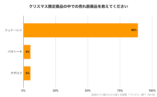 ドイツの菓子パンであるシュトーレンのほか、イタリアのパネトーネ、オーストリアのクグロフなど、世界各国のクリスマスに食べられる伝統的な菓子パンが、売れ筋、という結果になった。