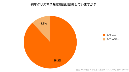 クリスマス限定商品を販売しているパン屋さんは全体の約9割いることが判りました。