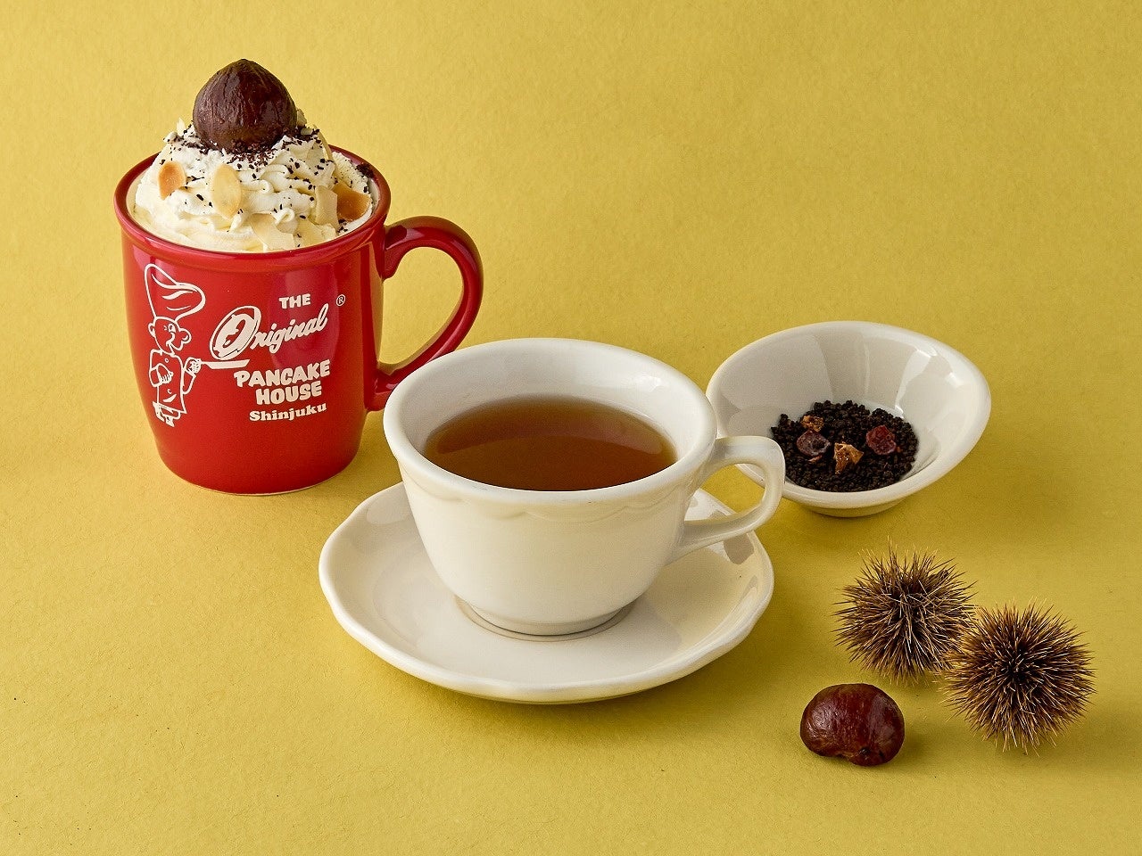 旬の栗を使ったパンケーキ2種類と栗の風味香るドリンク2種類が登場。
