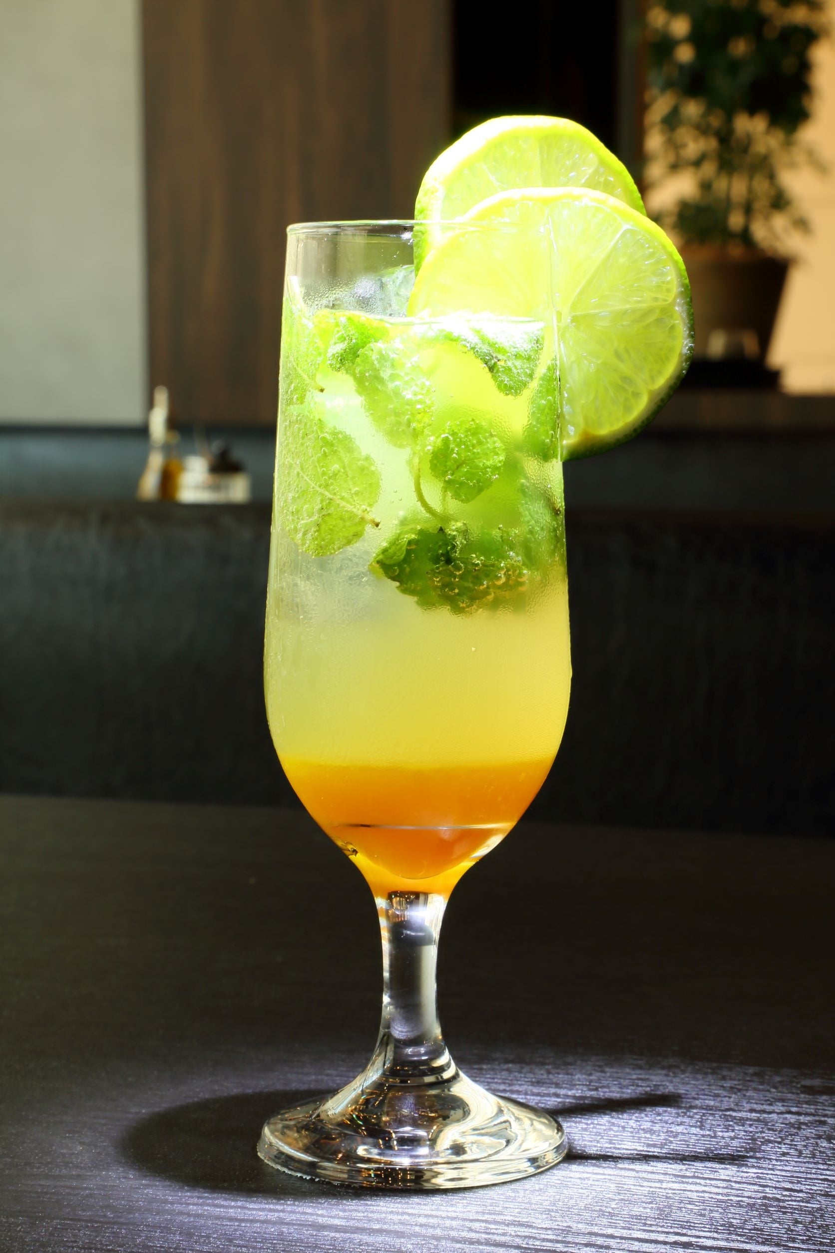 パッションフルーツのヴァージンモヒート。甘味と酸味を併せ持つパッションにミントがさわやかに香ります。