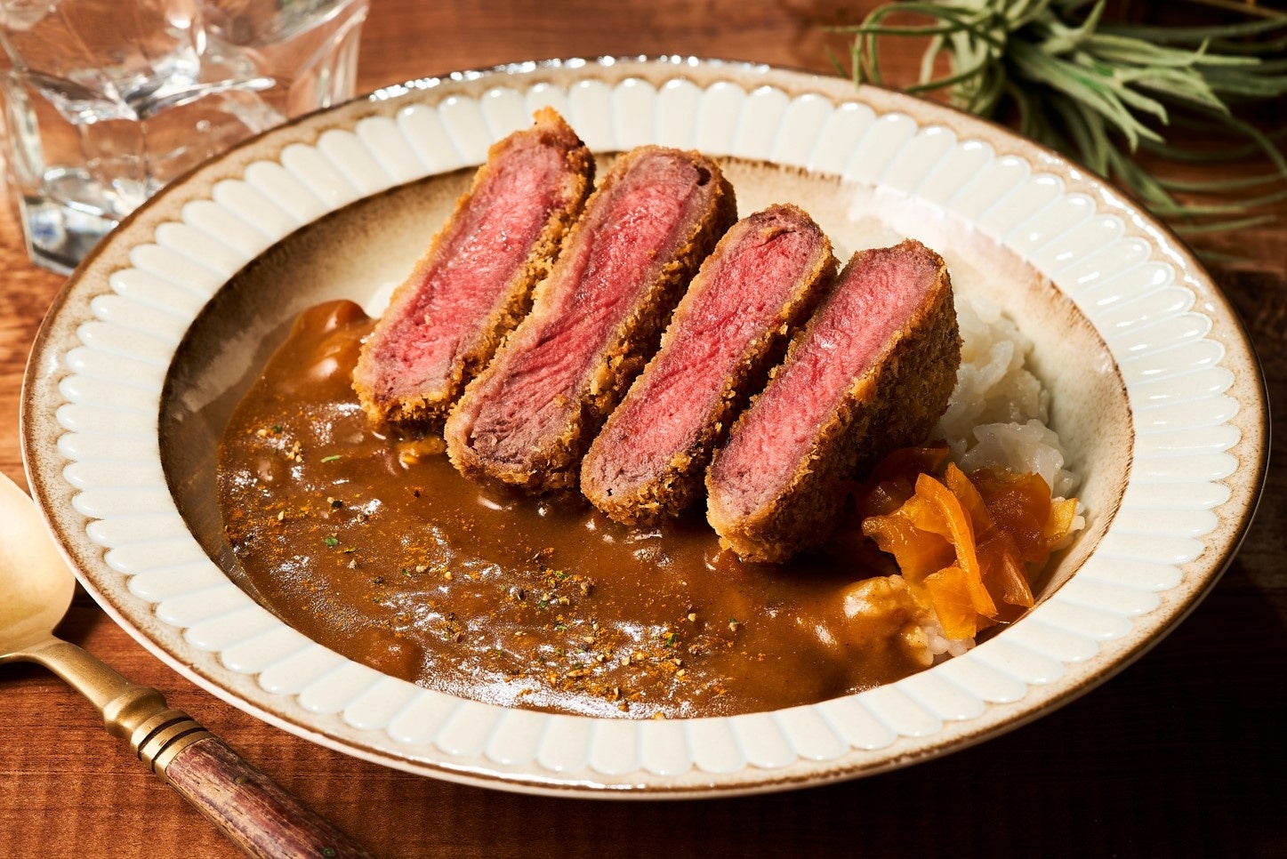 東京・世田谷の【玉川精肉店】からは、”肉の目利き職人”と都内有名レストラン料理長などのキャリアを誇る”料理の職人”が夢の最高タッグ!至福のメニューを堪能してもらいたいという想いから、厳選した上質な赤身肉を贅沢に牛カツにした北海道産牛フィレカツカレーをご用意!