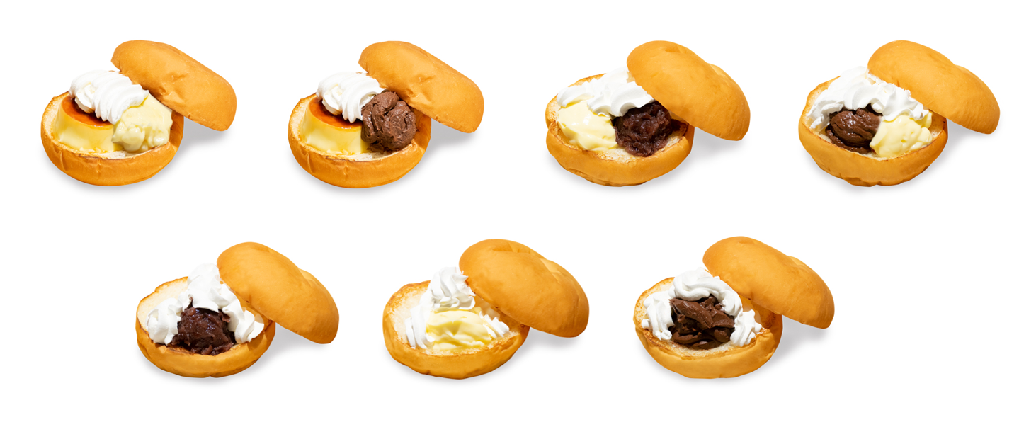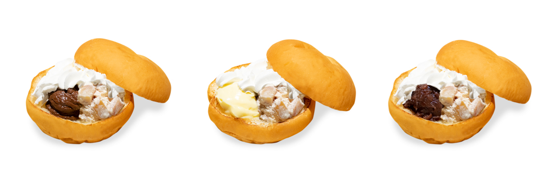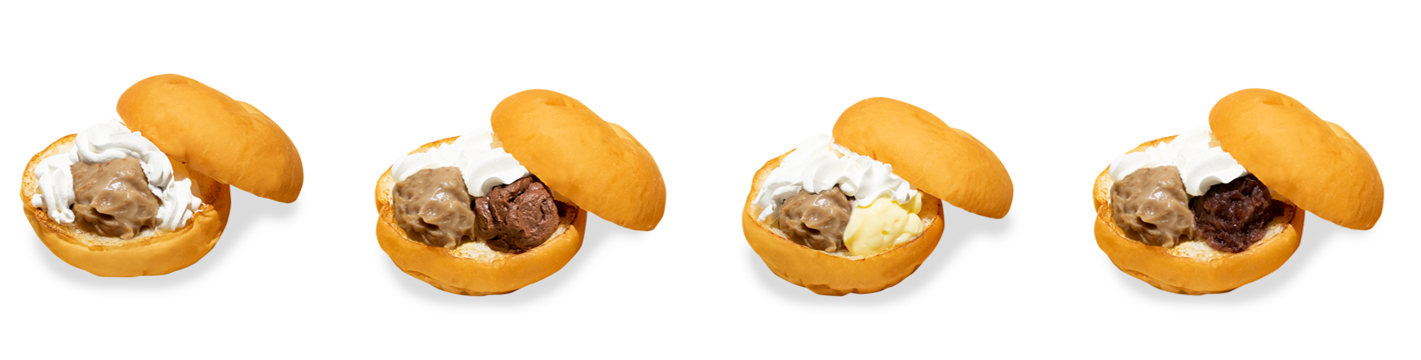 餡子やカスタード、チョコレートクリームと組み合わせた4種のラインナップを取り揃えました。オススメは、「栗&あんサンド」。栗と餡の相性が良く、日本人好みの和スイーツとしてお楽しみいただけます。