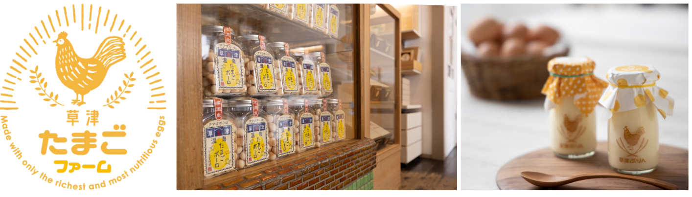 有名温泉地・草津温泉に構える群馬育ちの地鶏の極上たまごをふんだんに使用したこだわりのたまご菓子専門店。