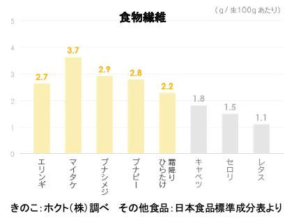 きのこに豊富な食物繊維は、腸内のコレステロールや脂質も吸着し、すっきり排出してくれます。また食べ応えがあるのに100グラム約20kcalと低カロリー。さらにきのこには、ビタミンB群が豊富なため、代謝アップも期待できます。