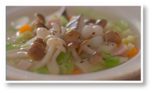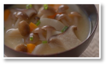 きのこたっぷりの「きのこスープ」を食べ、ほっこりとした気分になり、幸福感に包まれます。
