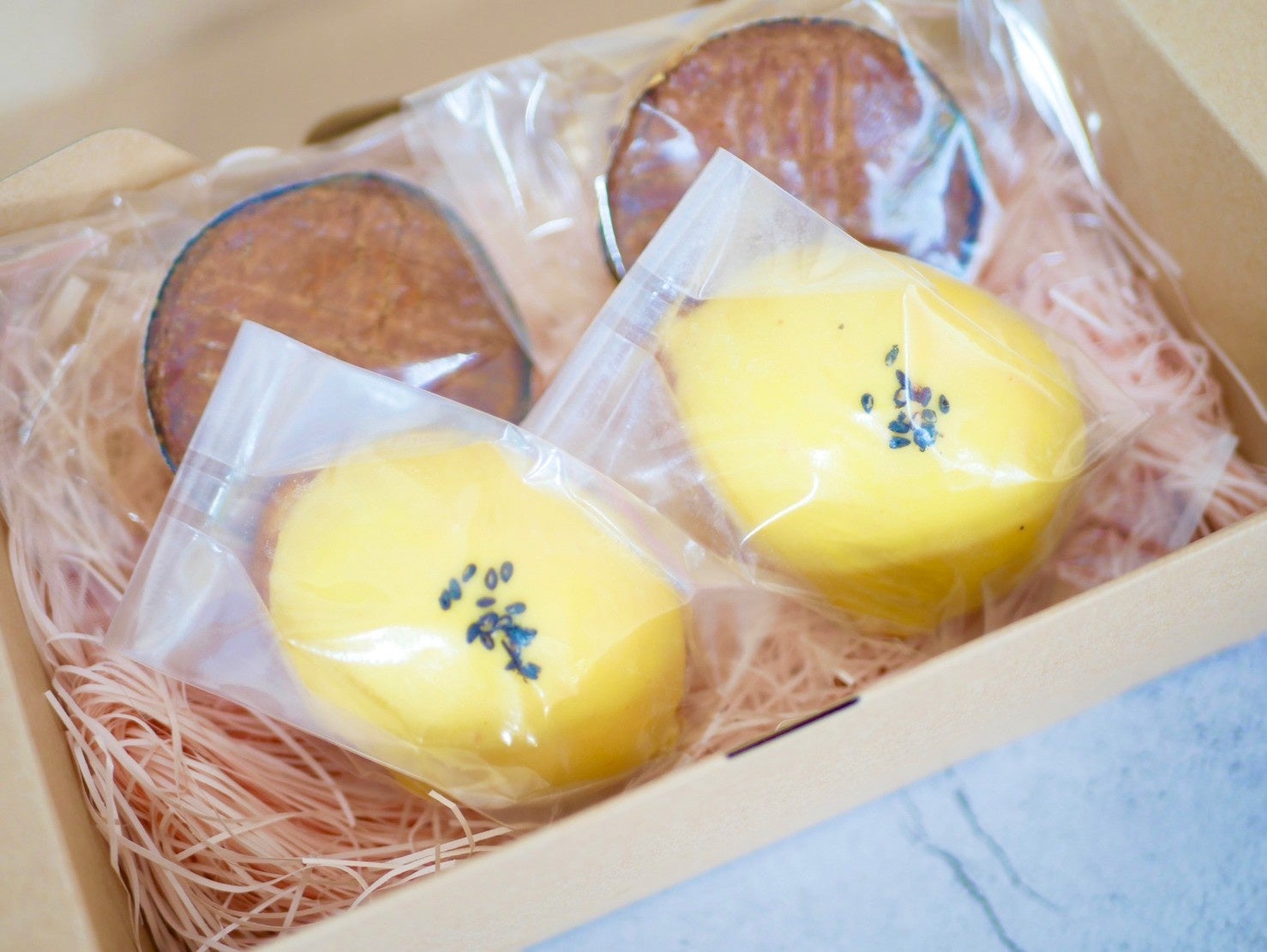 表面のブリュレはカリッと、中はしっとりなめらか、タルト生地はサクッと。食感も楽しく仕上げました。 芋ようかんとチーズケーキ、それぞれの美味しさがうまく引き立つよう試行錯誤して完成した、渾身のハイブリット和スイーツをぜひご賞味くださいませ!