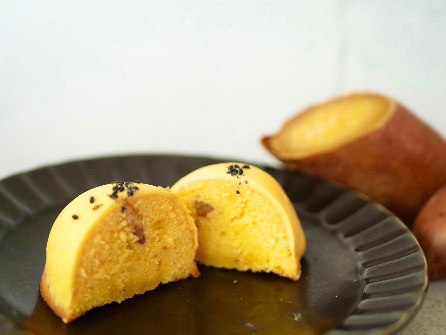 ふんわりと焼き上げた生地の周りにはホワイトチョコレートと黒ゴマをトッピング。まさにお芋のような見た目でプレゼントにもぴったり。しっとりとした食感とお芋が良く合います。