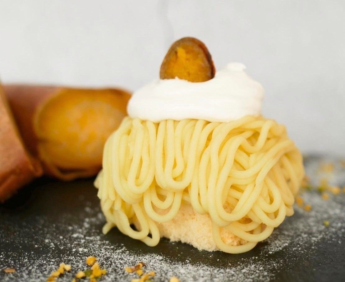 口に入れた食感、滑らかな芋クリームとチーズの塩味、カリっとしたキャラリゼの芳ばしさが広がります。一口ごとに新しい発見があるお芋とチーズのモンブラン、ぜひ味わってお召し上がりください。