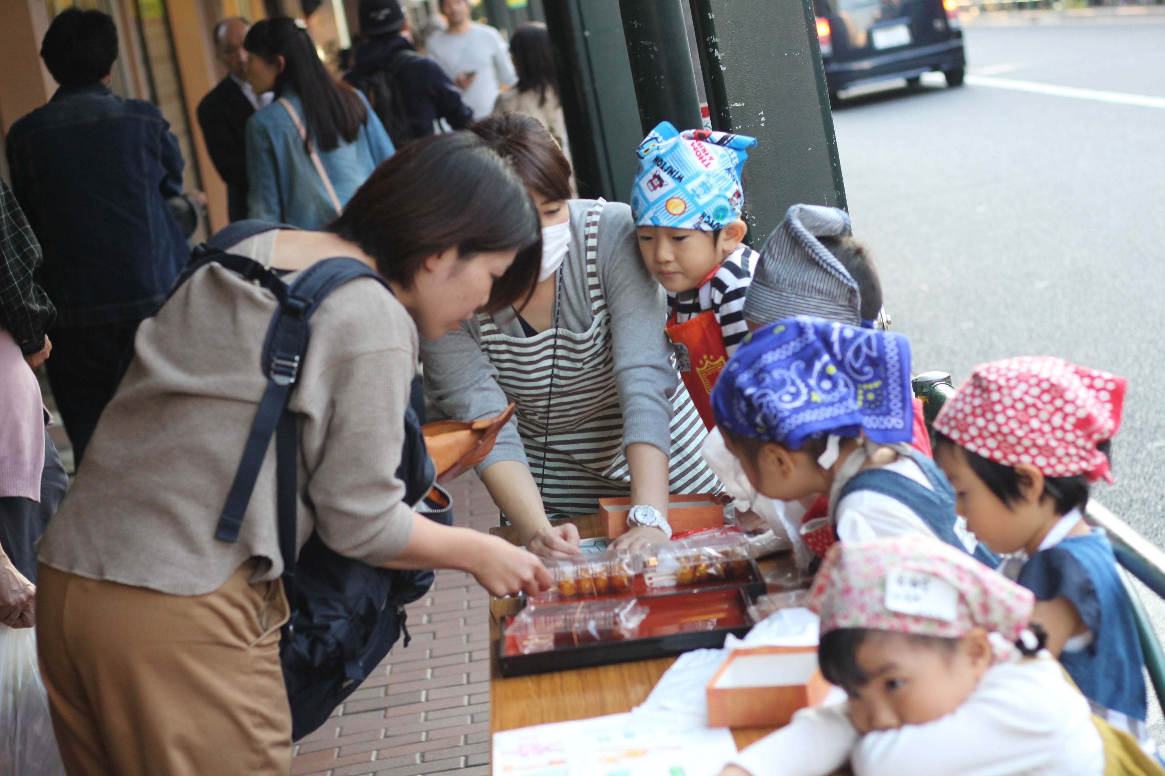 「大森山王マルシェ~スイーツビッグフォレスト~」とは、商店街にあるスイーツを集めて、子どもたちが販売するイベントです。お金のやり取りだけでなく、声を掛け合ったり、気にし合ったり、何かがあれば助け合ったり、商売を超えた交流の火を灯すことを目的に、アキナイの裏側にある人と人の関わりを今の時代にあわせて提案できないかと考え、このようなプログラムを作りました。