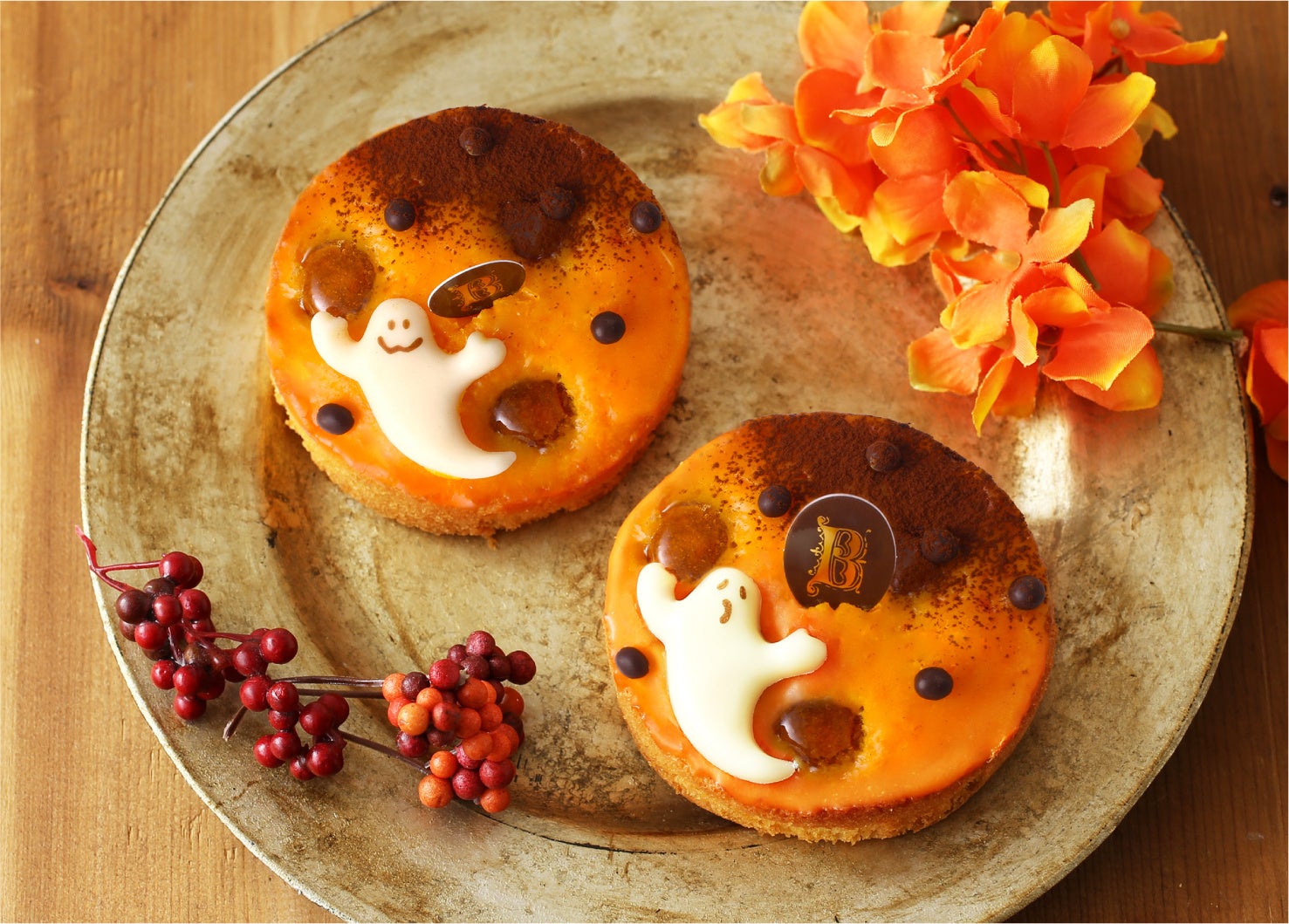 発酵バターとアーモンドの風味豊かな生地に、かぼちゃペーストを合わせた濃厚な味わい。ホワイトチョコのおばけなどを華やかに飾りました。