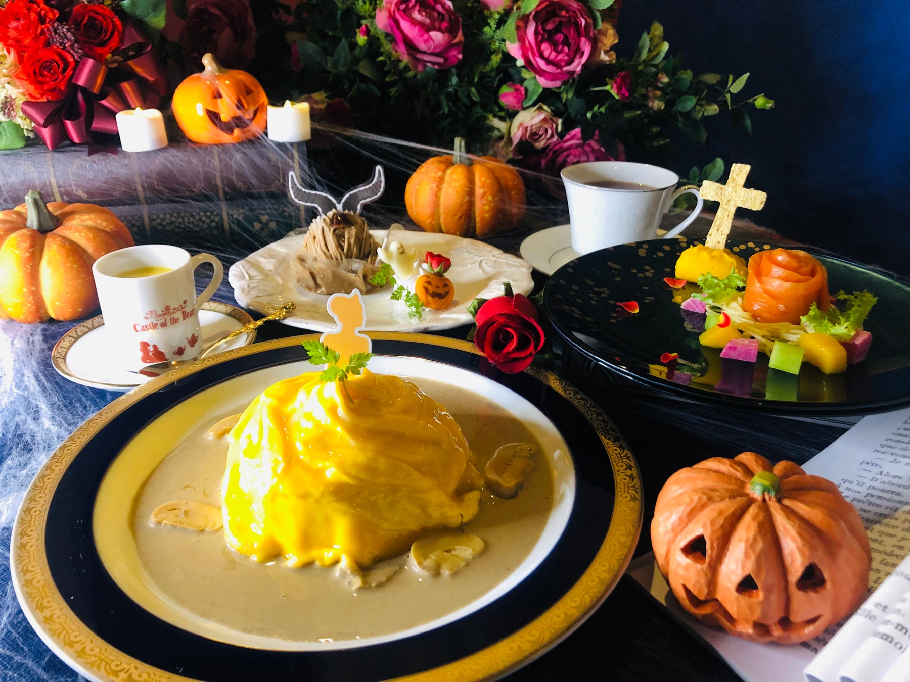 期間限定のランチコースプラン「美女と野獣のハロウィンランチコース」はトリュフときのこのソースのオムライスや野獣のモンブランなど美女と野獣の世界が楽しめる店内でハロウィンを満喫できます。