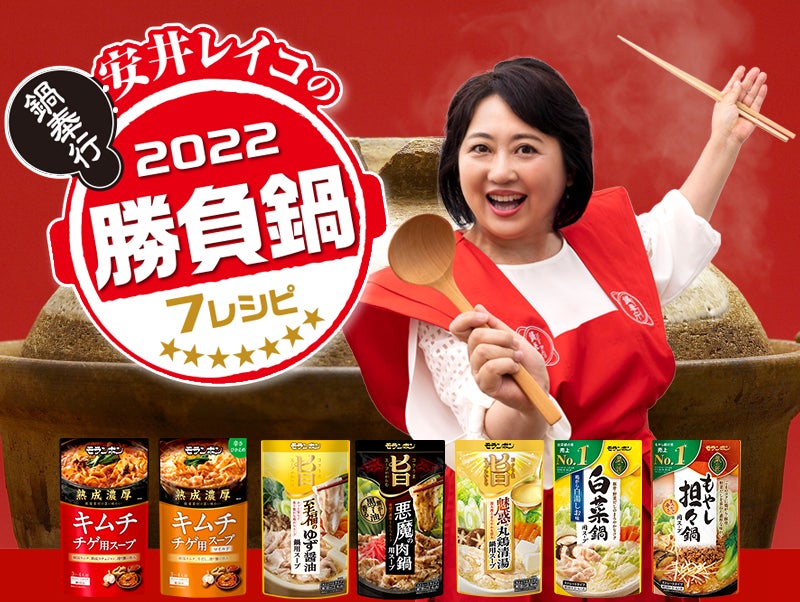 モランボン株式会社(本社:東京都府中市 代表取締役社長:全 峰 碩)は、家庭で鍋料理をもっと楽しんでいただくため、日本一お鍋に詳しいと言われるエッセイスト&料理研究家の安井レイコさんに7つの定番鍋用スープを使った「安井レイコの2022勝負鍋7レシピ」を考案していただきました。これらの勝負鍋レシピを9月15日(木)よりスーパーの店頭や、弊社ホームページ、SNSにて発信し、ご家族やお仲間との楽しく鍋を囲むきっかけ作りを行いたいと考えます。