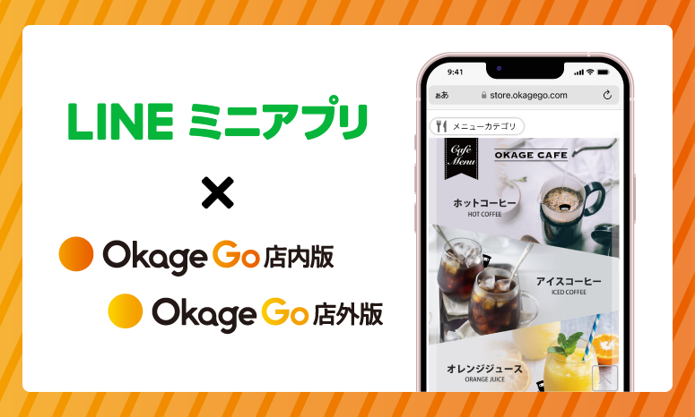 当社のモバイルオーダーには退店時に支払いを行う店内飲食での利用を主とした「Okage Go店内版」と、テイクアウトなどの注文時に決済を行う「Okage Go店外版」の2種類があり、その両方がLINEミニアプリと連携いたしました。