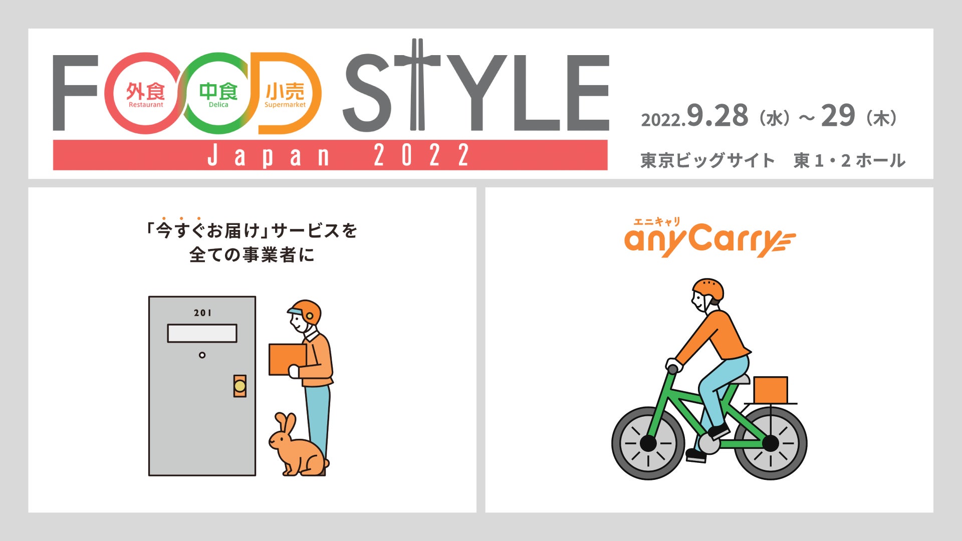 短距離・ラストワンマイル物流に特化した物流ソリューション事業を展開する株式会社エニキャリ(以下当社)は、9月28日(水)・29日(木)の2日間、東京ビッグサイト(東1・2ホール)で開催される「FOOD STYLE Japan(旧外食ビジネスウィーク/全国 食の逸品EXPO)」にブース出展します。当社ブースでは、当社が提供する物流サービスについてご紹介します。