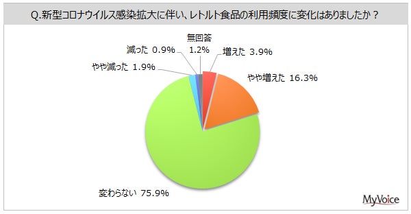 - 新型コロナウイルス感染拡大に伴う、レトルト食品利用頻度の変化