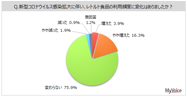 - 新型コロナウイルス感染拡大に伴う、レトルト食品利用頻度の変化