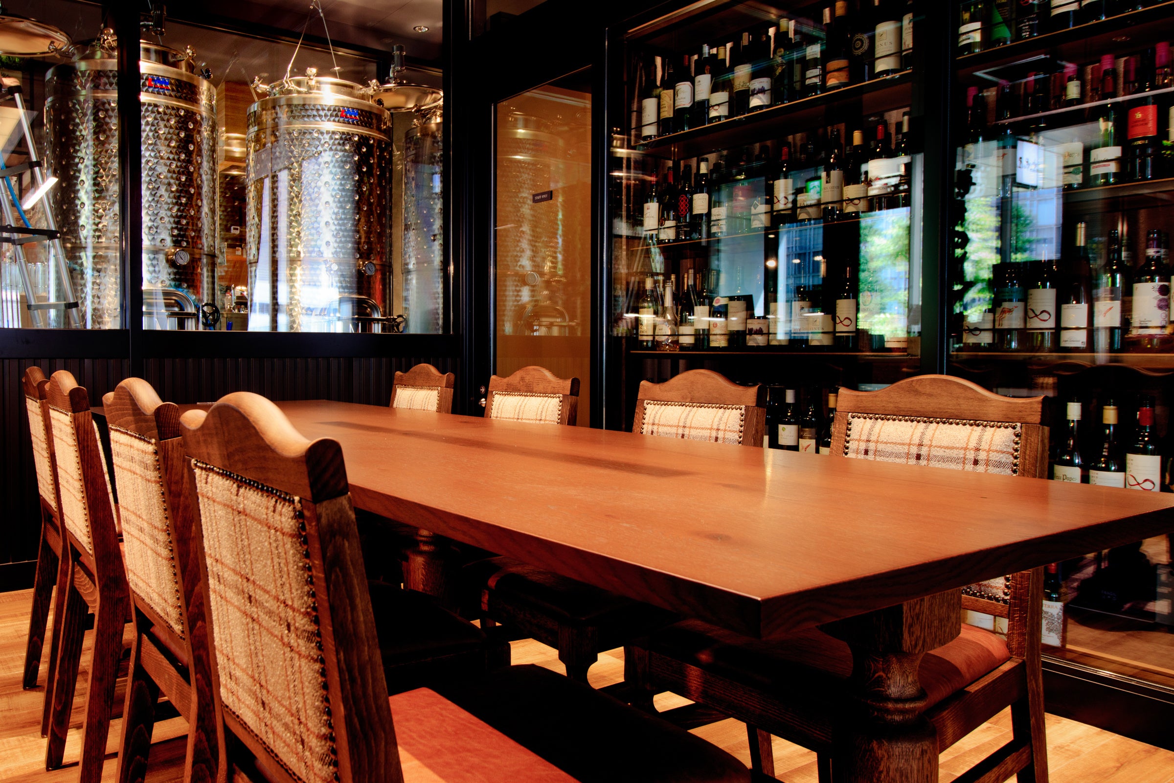 博多駅で醸造の様子を見ながら、店内でお食事を楽しんでいただけます。