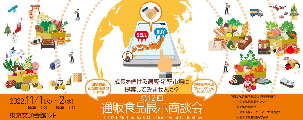 来る、11月1日(火)~2日(水)の2日間、東京交通会館12階(JR・地下鉄 有楽町駅そば)に於いて、第12回「通販食品展示商談会」が開催されます。本開催では、出展いただける皆さまが全国から増加し、約200社による前年度比約1.5倍の開催規模となる見込みです。