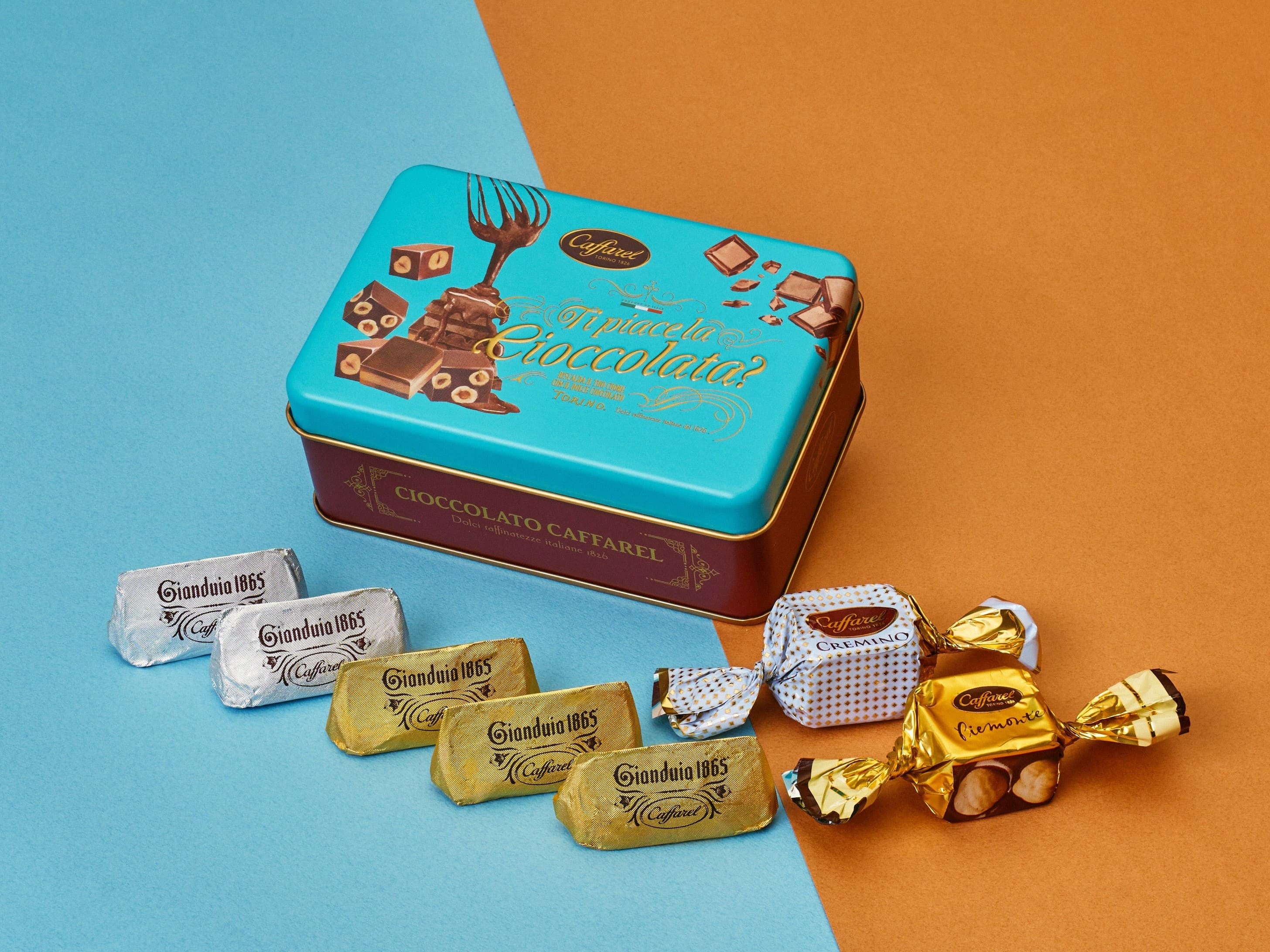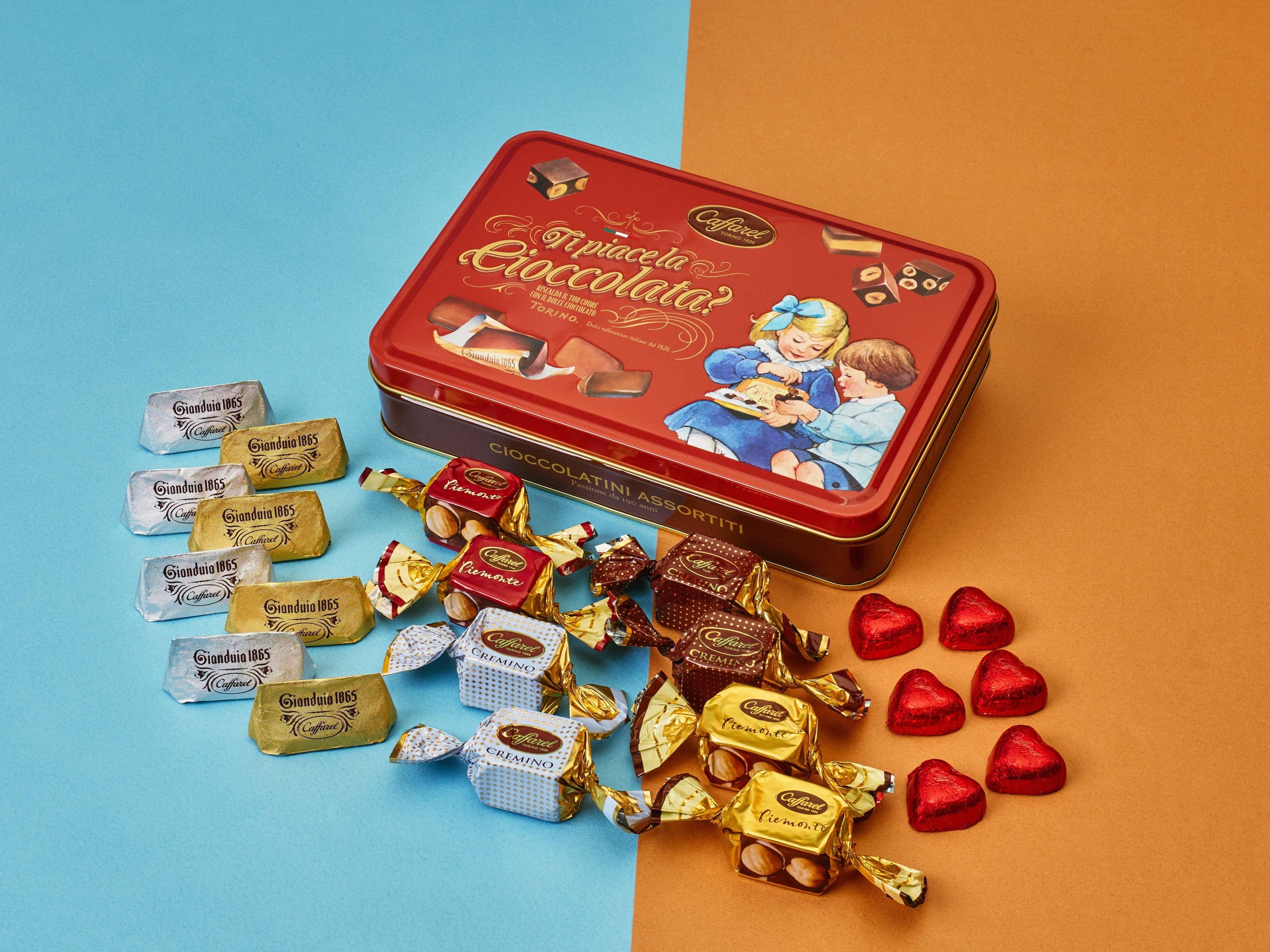 「カファレル チョコレートコレクション」は、カファレルの代名詞であるジャンドゥーヤをはじめ、大粒のヘーゼルナッツが入った「ピエモンテ」や3層からなる食べごたえ満点の「クレミノキューブ」といった、ザ・イタリア!なチョコレートをアソートした商品をご用意。缶のデザインも、どこかなつかしいレトロテイストなデザインに仕上げました。これからますますチョコレートが美味しくなる季節、自分用にはもちろん、ちょっとしたプレゼントにもおすすめです。
