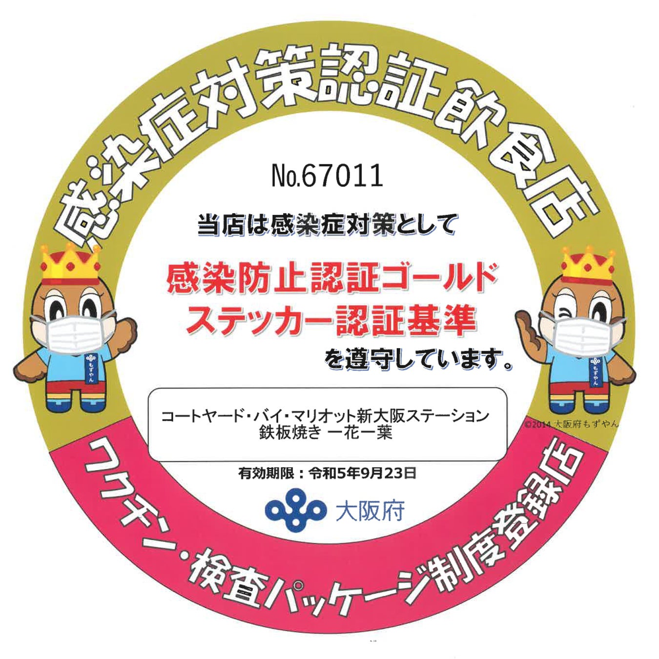 コートヤード・バイ・マリオット 新大阪ステーションでは、すべてのお客様の健康と安全を最優先に「三密回避」「徹底した衛生管理」「従業員の健康管理」に取り組む当社ガイドラインを遵守し、ホテル運営を行っております。レストラン&バーでは、大阪府が推奨する「感染に強い飲食店に向けて」の取り組みを実施し、「感染対策が取られているお店」としてのチェック項目をクリアいたしております。