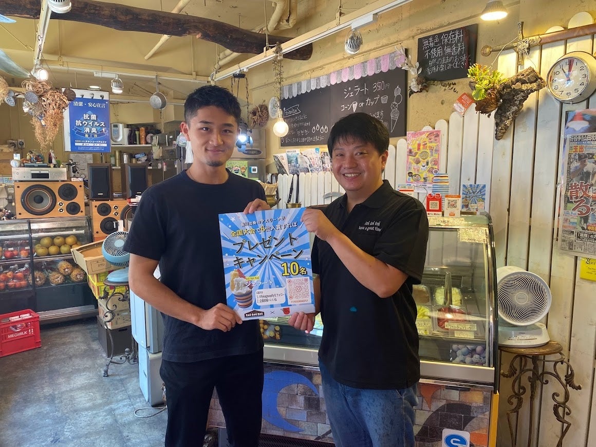 3名中いずれかの選手が、本大会で6位入賞をすると、応募頂いた中から抽選で10名様に、高松市常磐町のジェラート屋さんである「toi toi toi」のジェラートをプレゼントいたします。(店舗引き換えです。)