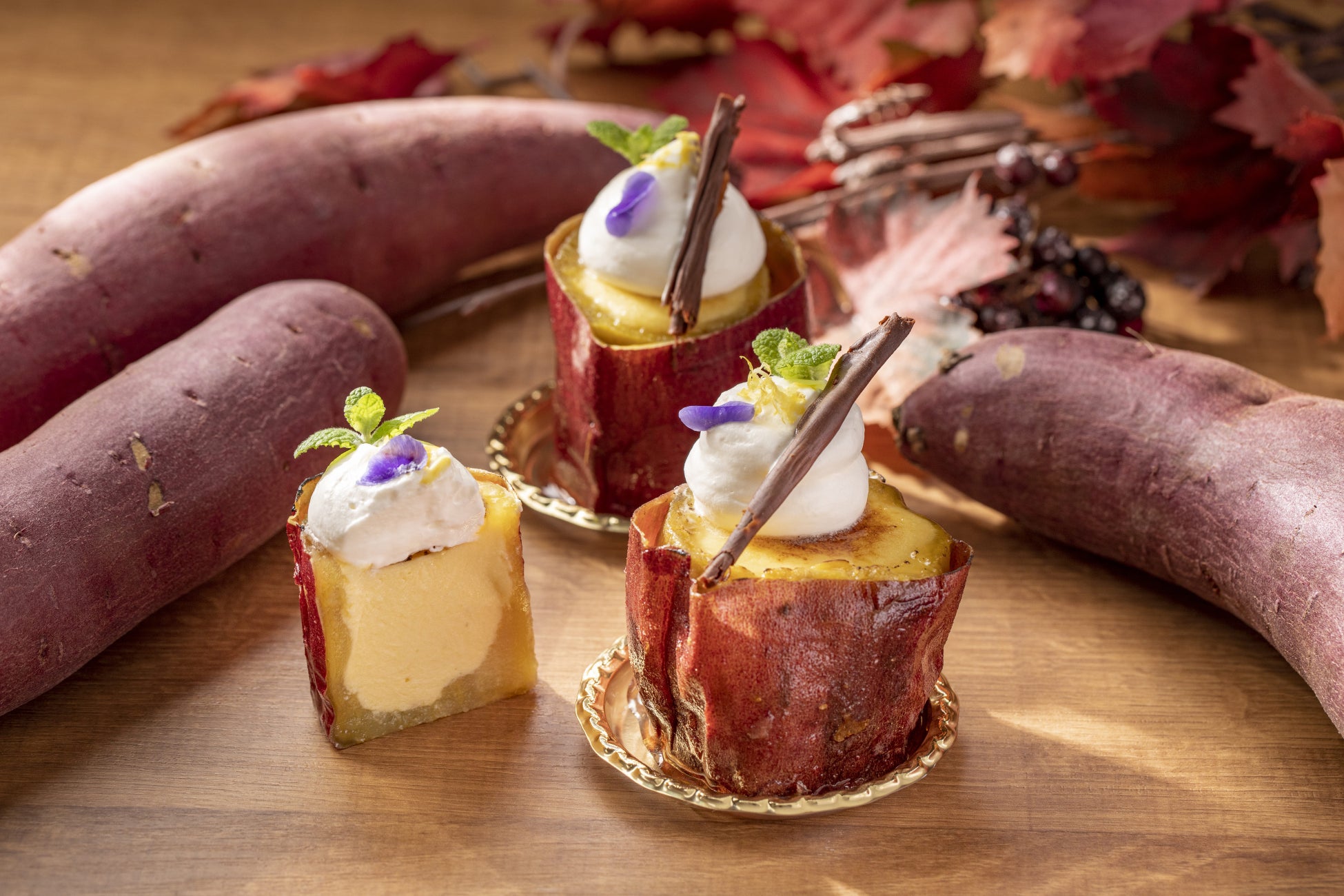 色付き始めた木々や花々に囲まれて、自然のままの美しさと静けさの中で心落ち着く時間をお過ごしいただける『EDEN カフェ&バー』から、新作とともに秋のフルーツをふんだんに使ったスイーツを販売いたします。ご滞在中のティータイムにもテイクアウトにもご利用いただけます。
