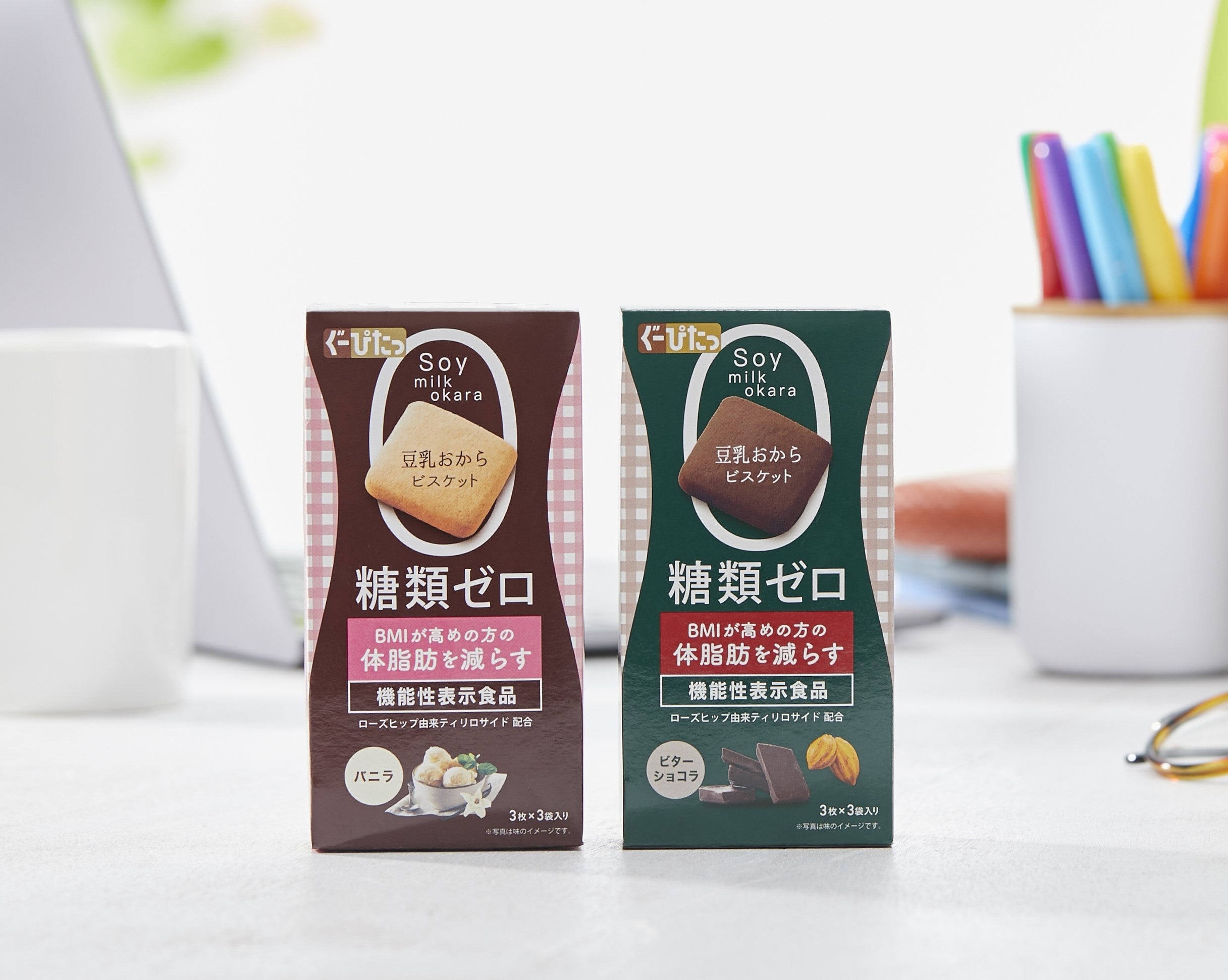 1997年にデビューした栄養調整食品「ぐーぴたっ」は、今年で25周年。ダイエット中に不足しがちな栄養素を配合した、女性のキレイを応援するブランドとしてデビューしました。食物繊維の他に大豆由来のたんぱく質・乳酸菌を配合した「豆乳おからビスケット」4フレーバーと、食物繊維に加え、カルシウム・鉄を配合した「しっとりクッキー」4フレーバーの栄養調整食品に加え、昨年度には、日本初※2の体脂肪減少※3と糖類ゼロを実現した機能性表示食品「豆乳おからビスケット アドバンス バニラ・ビターショコラ」の2フレーバーを投入するなど、常に進化を続けています。コロナ禍の自粛太りを気にする人や、一般のお菓子にも健康を求める人の増加による新規購入者増もあり、前年比138%※1と需要を増やしています。※1 2021年4月~2022年3月の前年比※2 TPCマーケティングリサーチ株式会社 2020年11月調べ(機能性関与成分を「ローズヒップ由来ティリロサイド」とし、BMIが高めの方の体脂肪を減らす機能性表示ビスケットとして 「ぐーぴたっ 豆乳おからビスケット アドバンス バニラ」発売時/2021年3月10日)※3 BMIが高めの方の体脂肪を減らす(BMI25以上30未満)