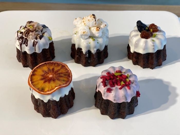横浜市の「センター南店」と「六角橋店」に店舗を構えるラトリエ・パンドットコム。厳選された材料を使って心を込めてパンをつくっています。今回はフランスのボルドー地方伝統の菓子カヌレを、デコレーションを施した「ドレッセカヌレ」と、和の風味をお楽しみいただける抹茶やほうじ茶などを使った「和カヌレ」の2つのタイプを合計10種ご用意しています。