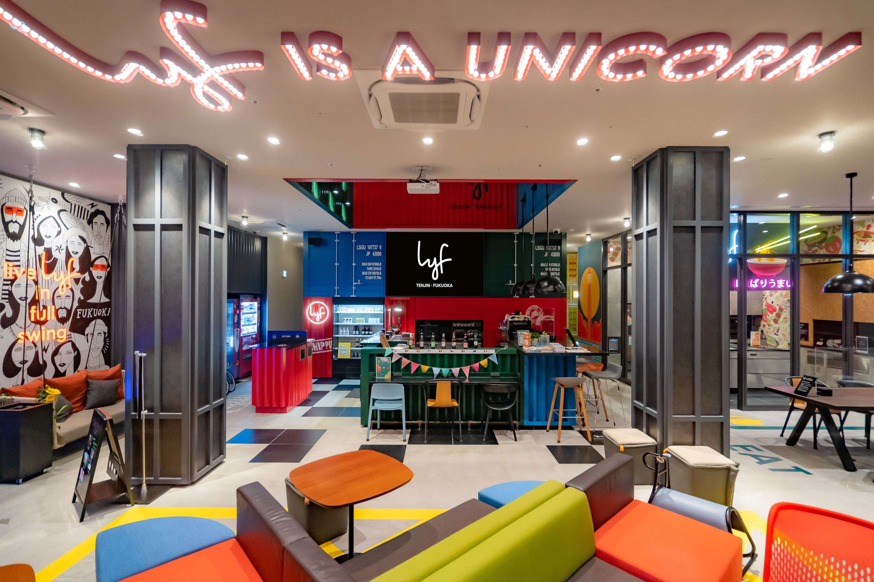 暮らす・働く・遊ぶが一体となった、新しい住環境を提案するコリビングホテルlyf Tenjin Fukuoka は、福岡市のショッピングとレクリエーションの中心地である天神エリアからほど近く、天神駅からも徒歩圏内の今泉エリアに位置しています。
