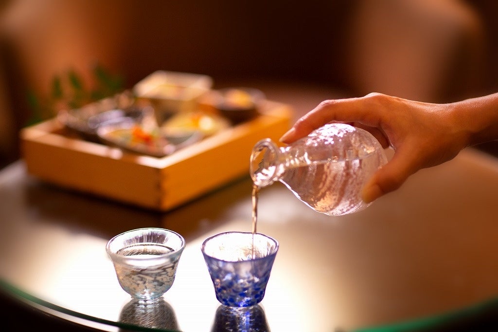 - 夕食時に、地酒3種類の吞み比べセット。お部屋に静岡の銘酒・大吟醸「水響華」1室1合