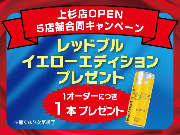 レッドブルイエローエディション(250ml缶)を、ご注文1回につき1本プレゼント致します。