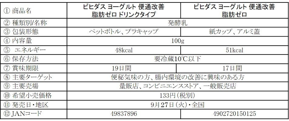 森永乳業は、『ビフィズス菌BB536』を配合した「ビヒダス ヨーグルト」シリーズから、機能性表示食品「ビヒダス ヨーグルト 便通改善 脂肪ゼロ ドリンクタイプ」「ビヒダス ヨーグルト 便通改善 脂肪ゼロ」を9月27日(火)より全国にて新発売いたします。