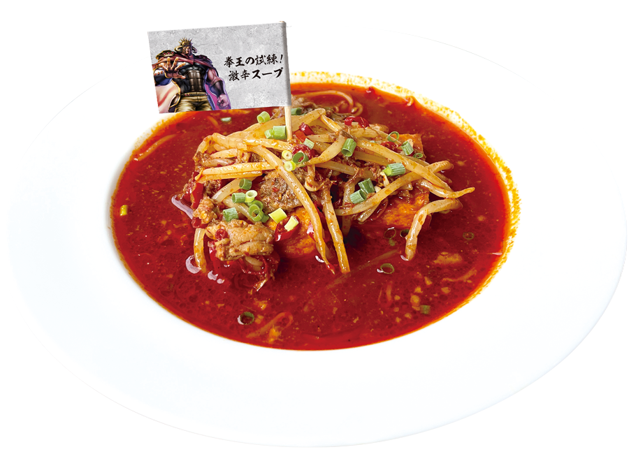 拳王からの試練として、悶絶必至の激辛スープを御用意しました。 口を付けたら最後、食べ終わった後もご注意ください!