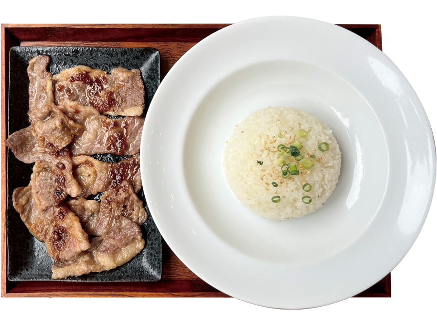 「汚物は消毒だぁ~」と叫ぶ火炎放射ザコを模して、お客様の前でバーナーでカルビを炙ります。 火炎放射で消毒されたカルビをご飯にのせて召し上がれ。