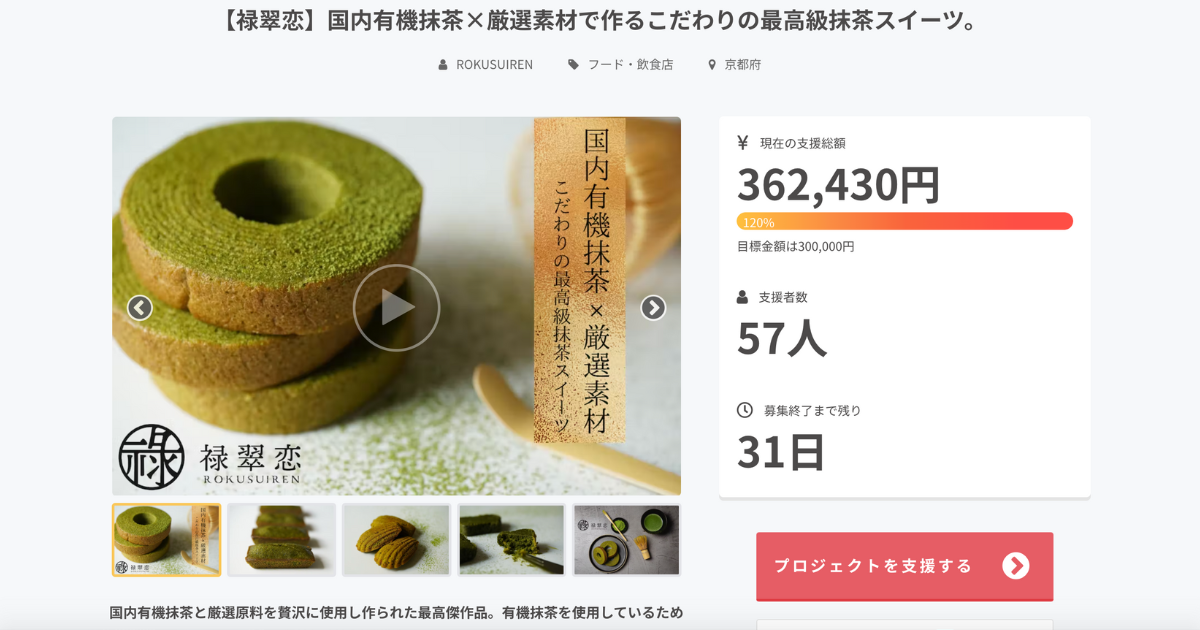また、それに伴い2022年8月27日(土)にクラウドファンディングサイトCAMPFIREにて「【禄翠恋】国内有機抹茶×厳選素材で作るこだわりの抹茶スイーツ」の販売を開始。