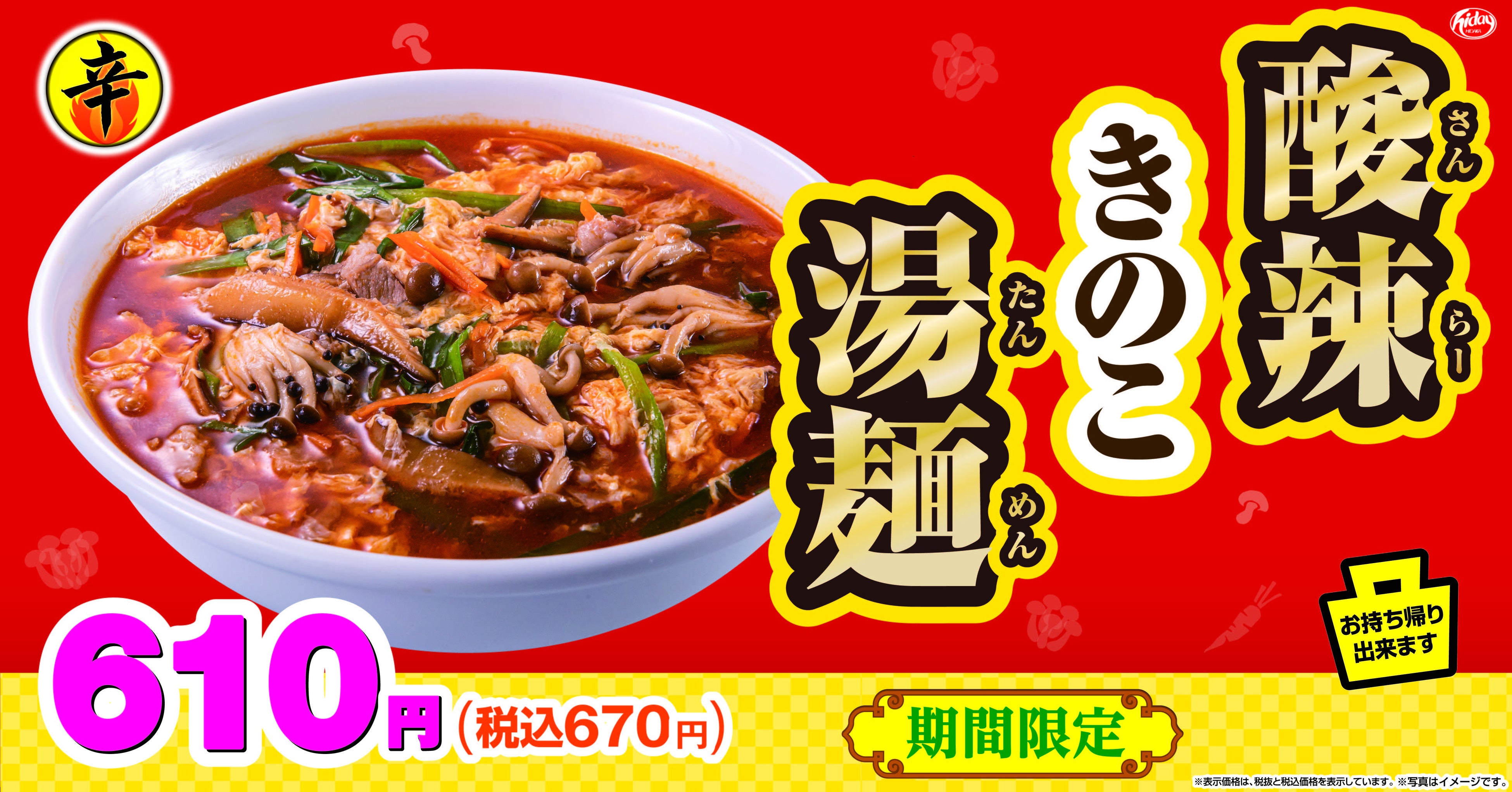 ●季節商品「酸辣きのこ湯麺」期間限定販売 定価:670円(税込)