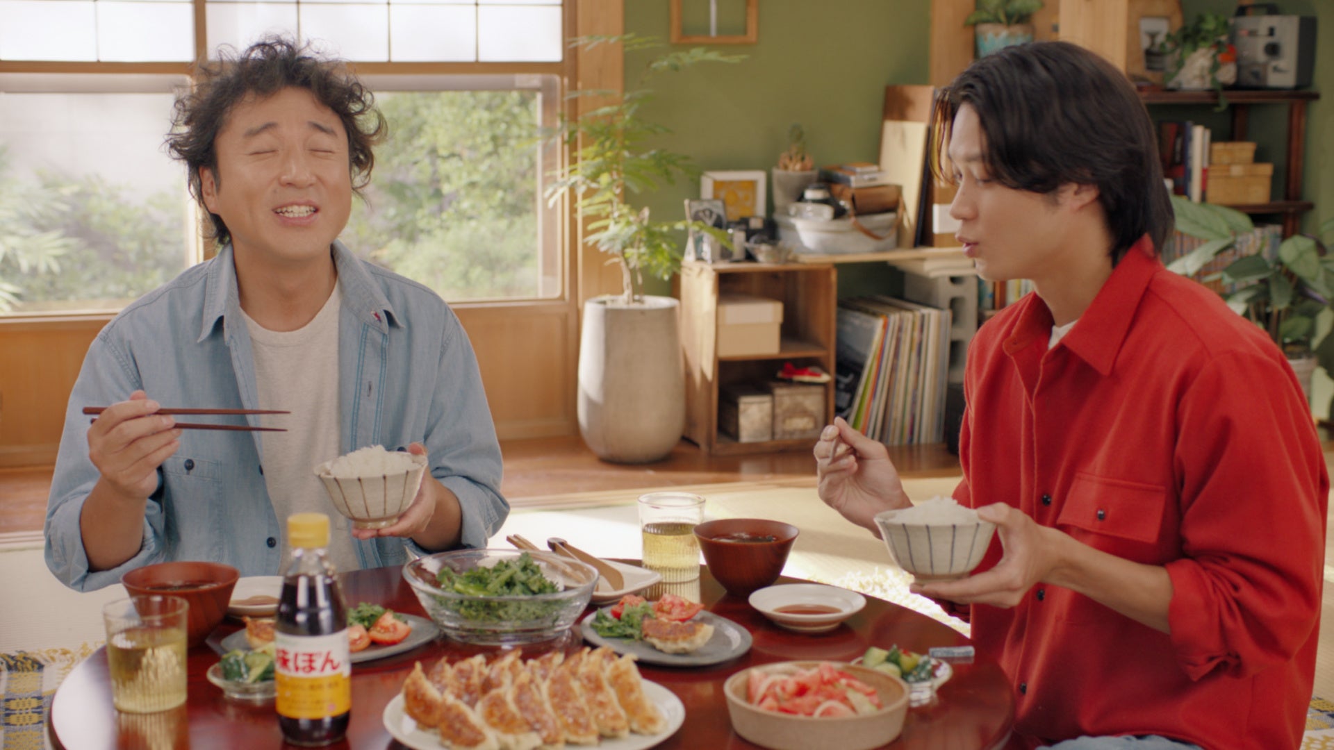 味ぽんで食べる餃子について、ジューシーな焼き餃子を味ぽんでさっぱり、おいしくいただける食べ方として、ミツカンは1970年ごろから提案を始めました。最近では、ムロツヨシさんと磯村勇斗さんを起用したTVCM『ジュワジュワ』篇(15秒)を、9月3日(土)より公開。本動画は、ミツカン公式 YouTube チャンネルでご視聴いただけます。