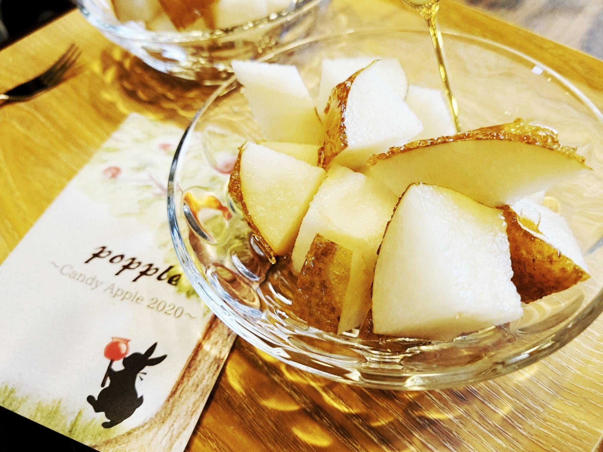 【商品概要】幸田町産の梨(豊水)を使用し、コーティングの飴には果汁100%のりんごジュースを使用(当社のりんご飴と同じ)。飴を付けることで皮も抵抗なく、梨の美味しさも栄養もまるごと食べていただくことができます。購入後は、一旦冷蔵庫に保管し、しっかりと冷やしてからのお召し上がりがおすすめです。