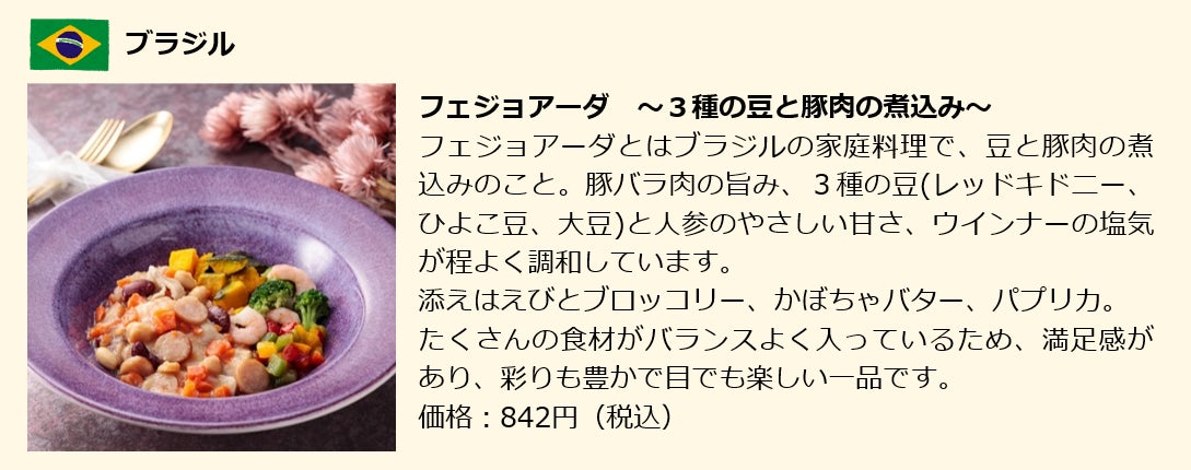 ・商品:アメリカ、ブラジル、インドなど様々な国の料理全12種(2022年9月現在)