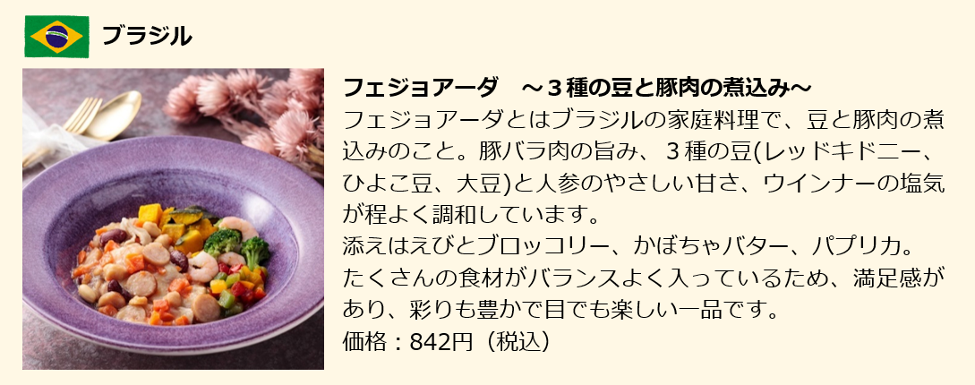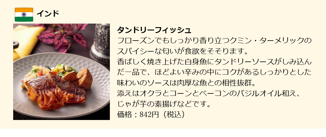 ・商品:アメリカ、ブラジル、インドなど様々な国の料理全12種(2022年9月現在)