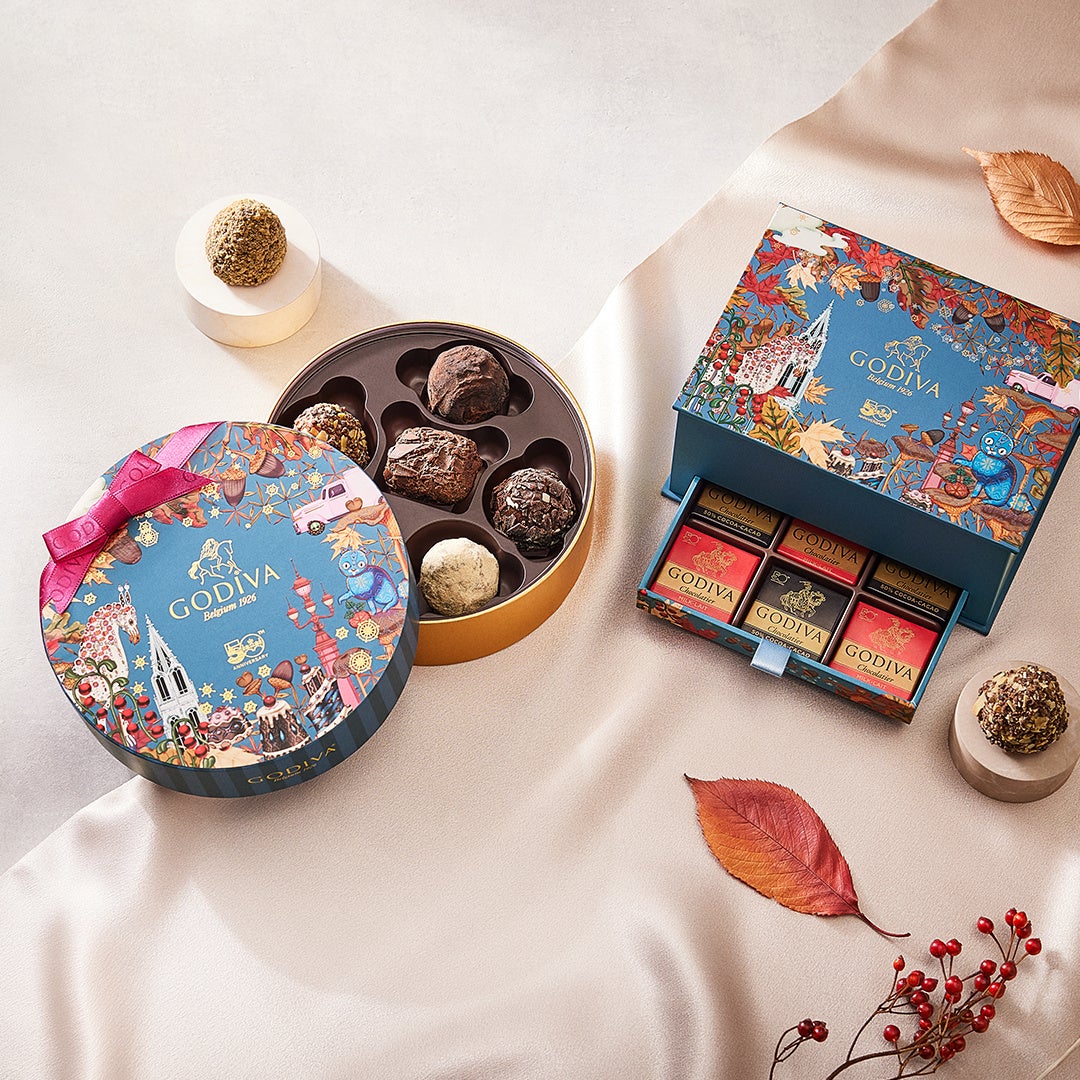 ゴディバ日本上陸50周年の記念すべき2022年の締めくくりに。このメモリアルイヤーにゴディバと日本の歴史を物語る、創業者ドラップスの秘伝のトリュフを華やかなボックスに詰め合わせました。