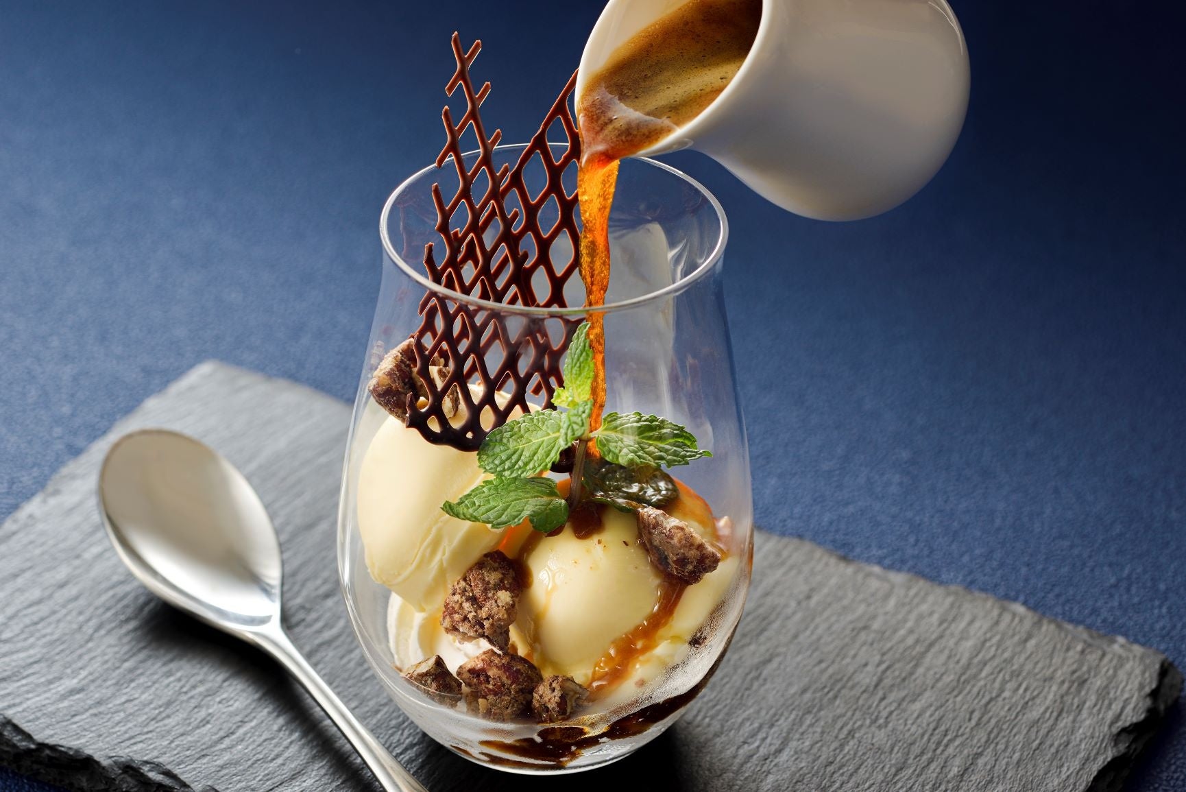冷たいバニラのアイスクリームに、温かいエスプレッソとアイリッシュウイスキーをかけて味わうスイーツ。最初はスプーンでデザートとして、最後はグラスを傾けて、甘いカクテルとしてもお召しあがりいただけます。