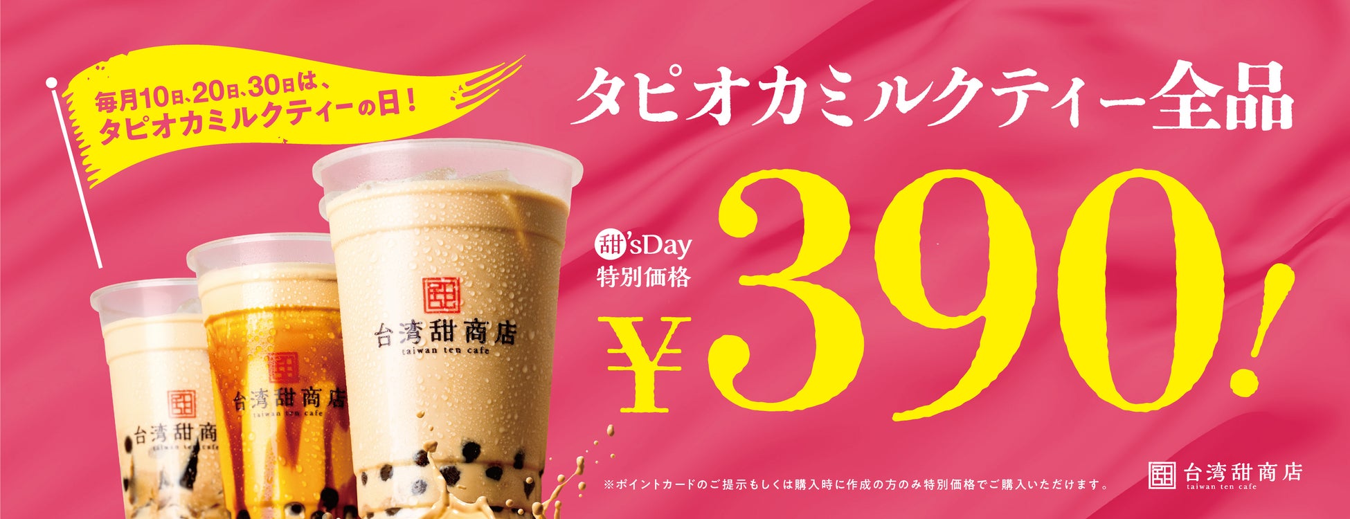 - 「新 甜′s Day」で台湾甜商店のタピオカミルクティーが、すべて390円!最大で250円お得に!