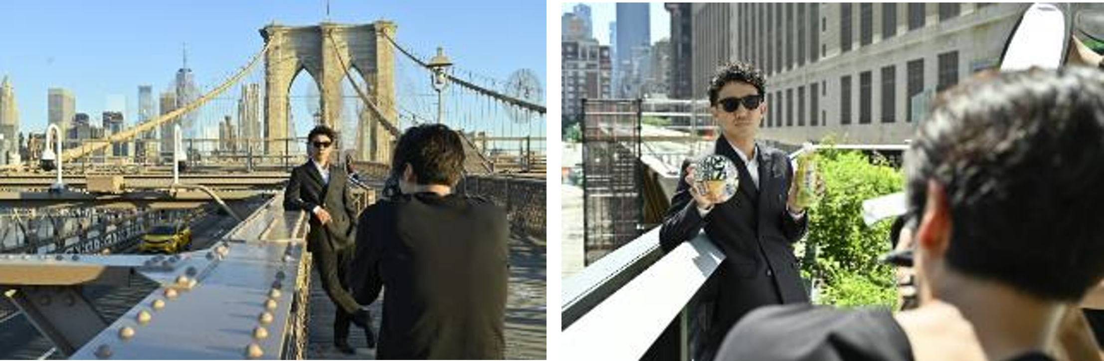 私服のブラックスーツとサングラスに身を包み、真剣な眼差しでカメラを見つめ、まさに「ワールドクラス」な姿でニューヨークの街中にたたずむ綾部さん。撮影の合間には、ニューヨークを初めて訪れたスタッフの記念写真を綾部さん自らが撮影して盛り上げるなど、終始笑い声の絶えない和やかな現場となりました。