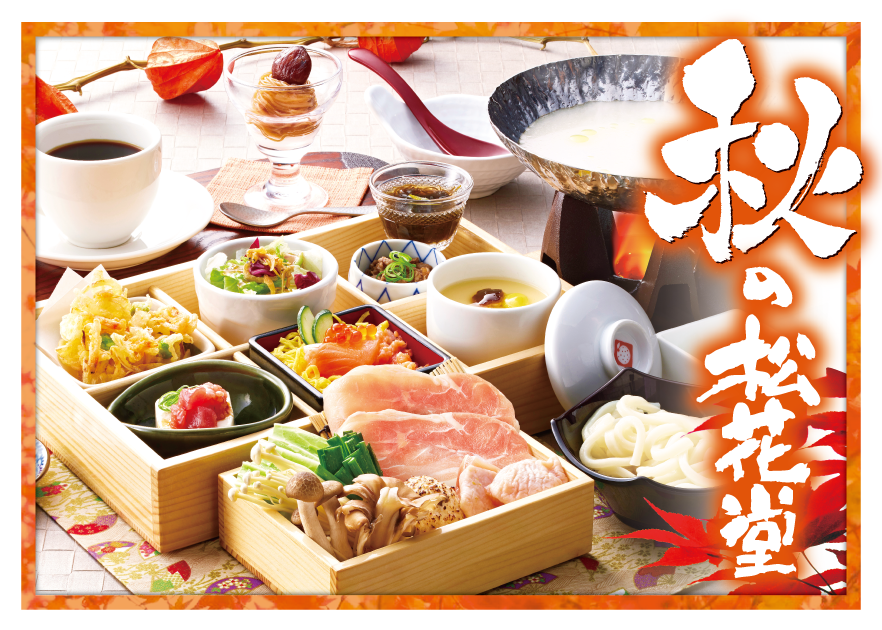 平日ランチタイム限定の「松花堂ランチ」と「季節の上寿司御膳」が、秋の献立で登場。デザート・ドリンク付きのセットは、秋期間限定のデザート3種からもお選びいただけます。