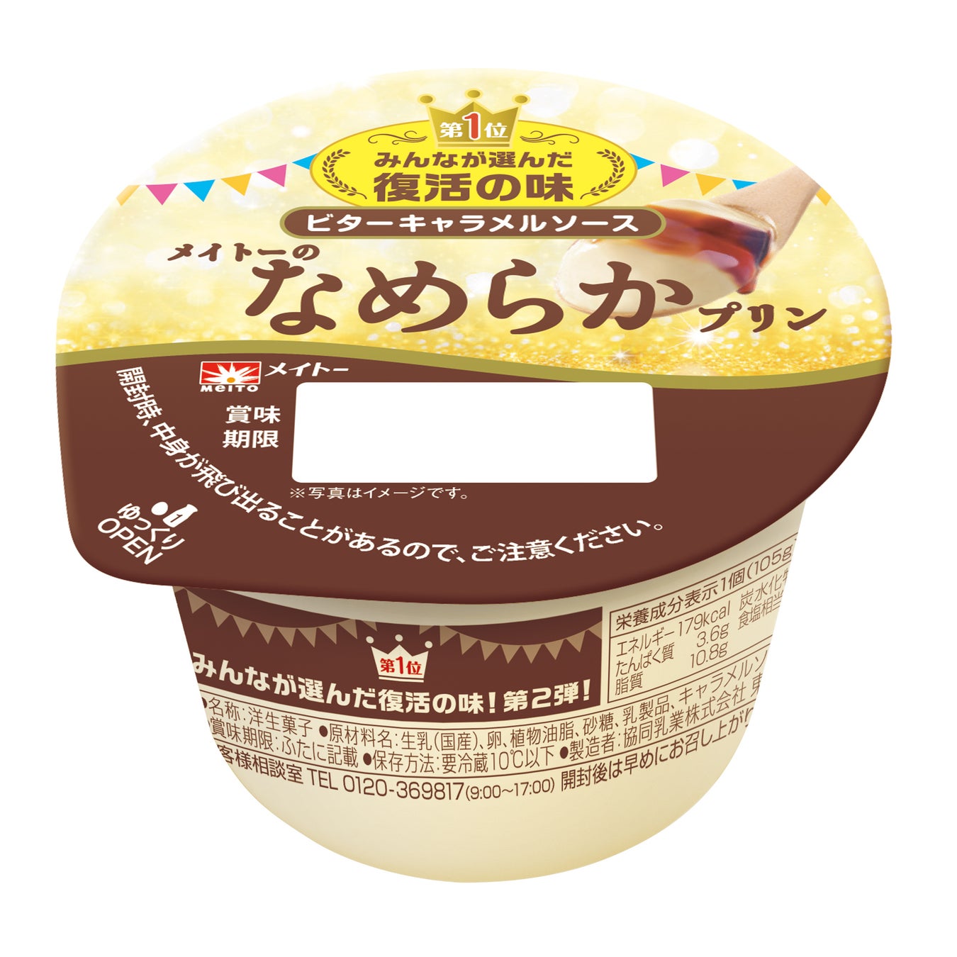 今回新たに発売となる「メイトーのなめらかプリン ビターキャラメルソース」は、2022年4月に実施した「第2回なめらかプリン復活祭」にて、投票の結果選ばれた「みんなが選んだ復活の味」です。