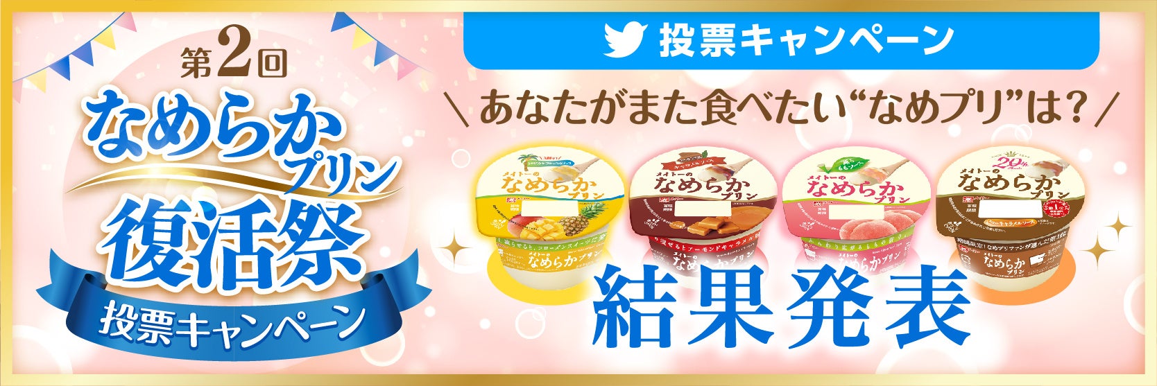 「第2回なめらかプリン復活祭」では、2017年から2019年の間に発売された期間限定なめらかプリンの中から厳選した4商品のうち、また食べたい!食べてみたい!と思う商品に投票いただきました。大接戦となった復活祭で、投票の結果1万票以上の票を集め見事1位となった「ビターキャラメルソース」を、この度期間限定で発売することになりました。