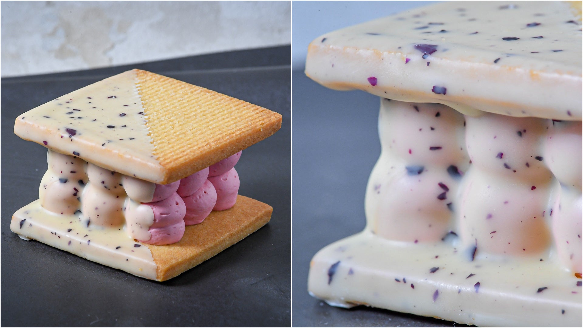 この日のために用意した花のドリンクは3つ。食用バラをつかった「ローズベリーソーダ」「薔薇のワイン」「薔薇のスパークリング」です。目で楽しみ、舌で味わい、鼻から抜ける香りの余韻をお楽しみいただけます。さらに。スペシャルな薔薇のデザートとして、薔薇とラズベリーのソースとマロンクリームをサブレでサンドしたSeiichiro,NISHIZONO氏による「薔薇のバターサンド」を用意しました。これにバラジャムをたっぷりと乗せてお召し上がりいただきます。