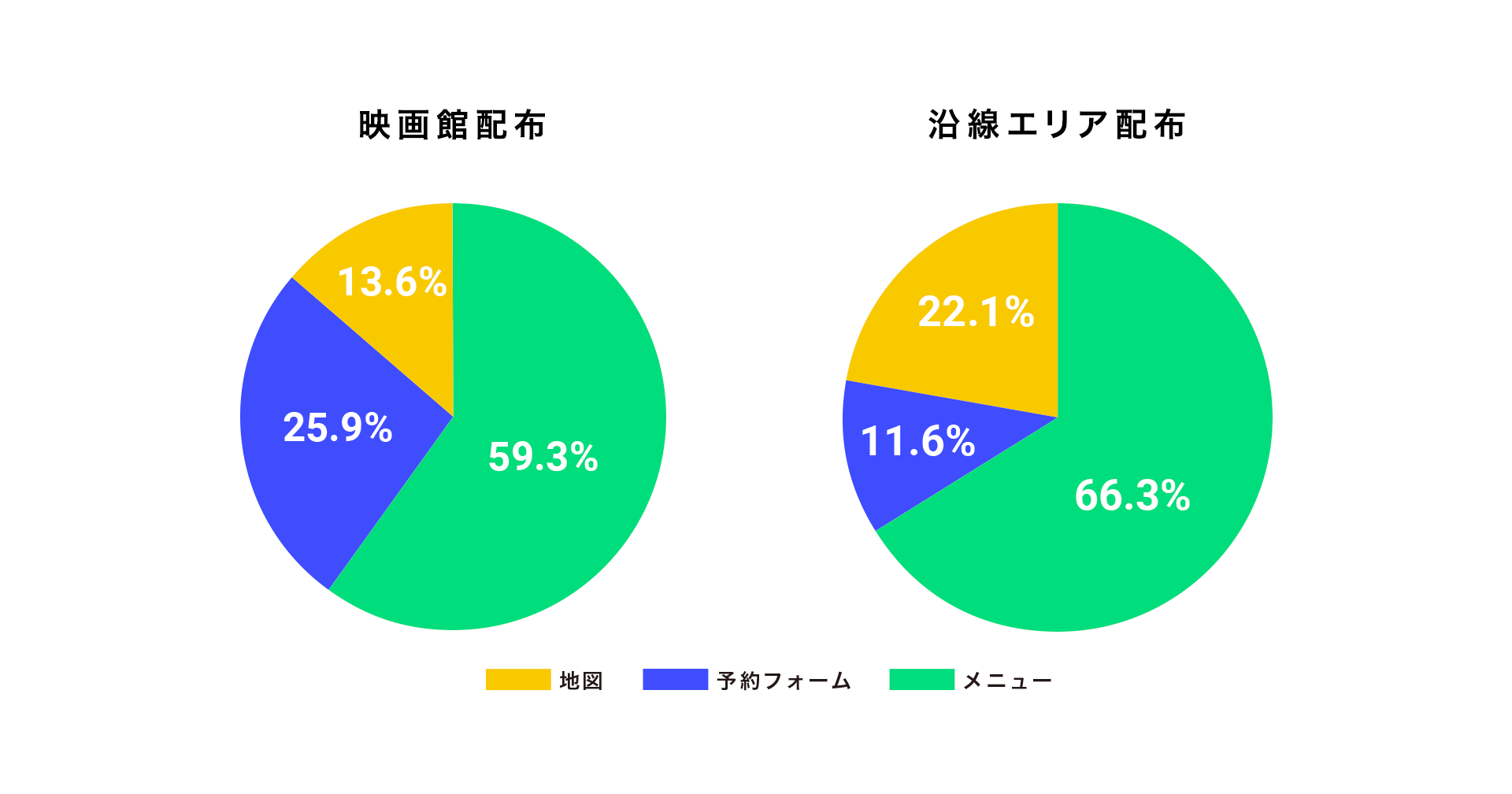 読取内容の傾向としては、メニューが一番多いことはどちらも同じですが、予約フォームへのアクセスは映画館配布が沿線エリアの倍以上となりました。