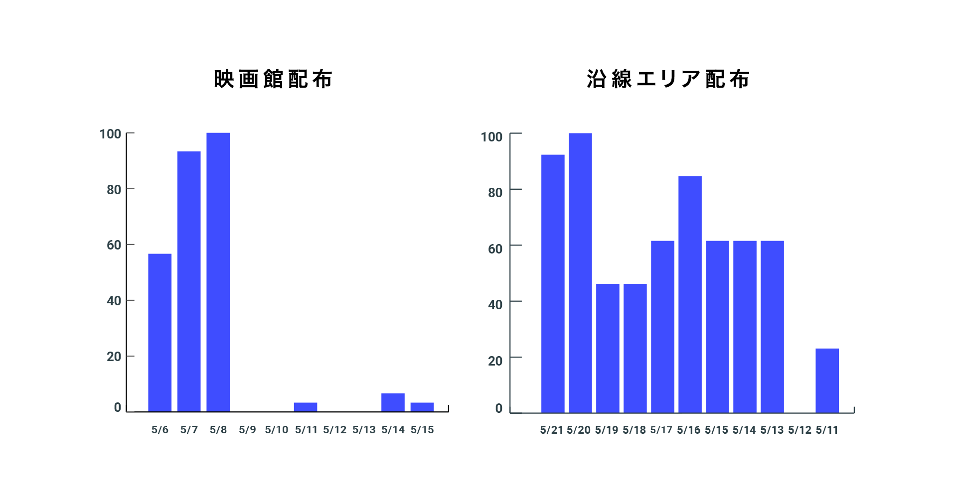 映画館配布では、チラシ配布日にQRコードからアクセスした人が圧倒的に多かったが、沿線エリア配布では、定期的にアクセスしていることが判明しました。